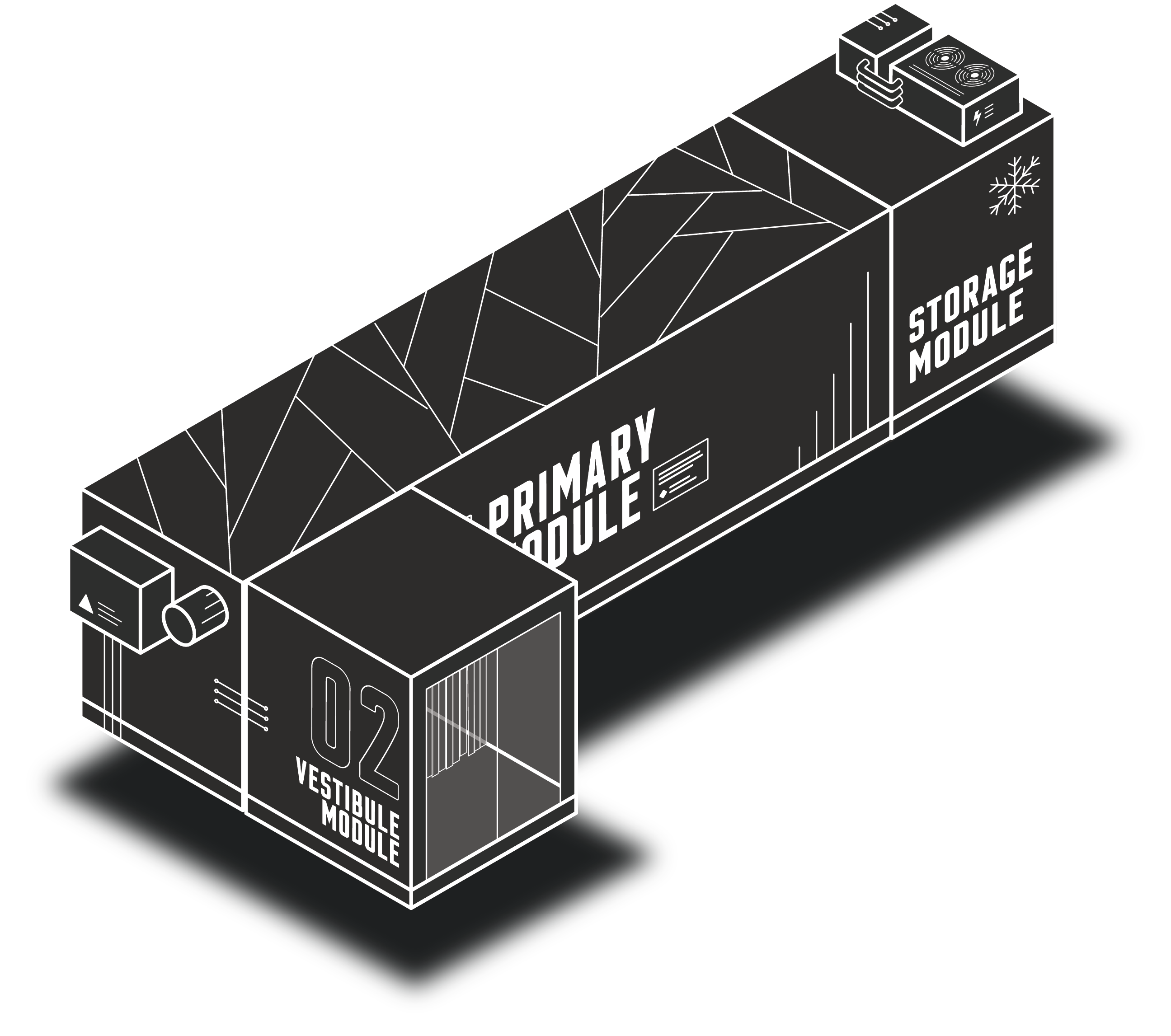 Used as the ideal starting point for your modular farm. Self-contained and self-sufficient, the Primary Module provides all requirements for production, from seeding to packaged foods. Our fleet of modules compliment the Primary Module's all-inclusive foot print.